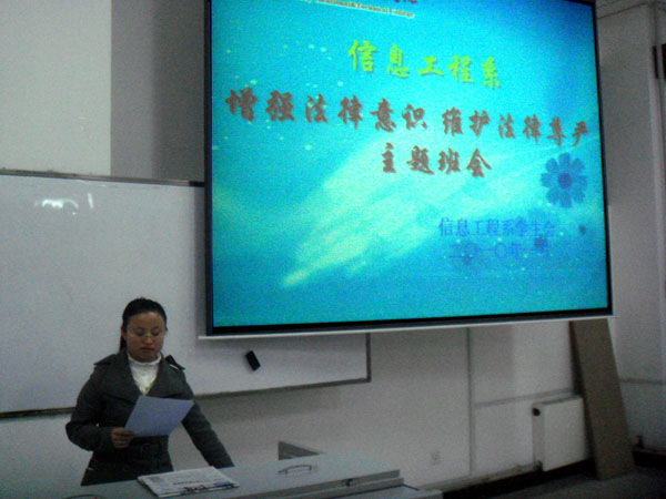 1月12日晚,信息工程系举行了以“增强法律意识,维护法律尊严”为主题的班会活动,信息工程系学管主任赵磊老师,辅导员吐尔逊老师、各班班主任以及全系学生参加了主题班会。