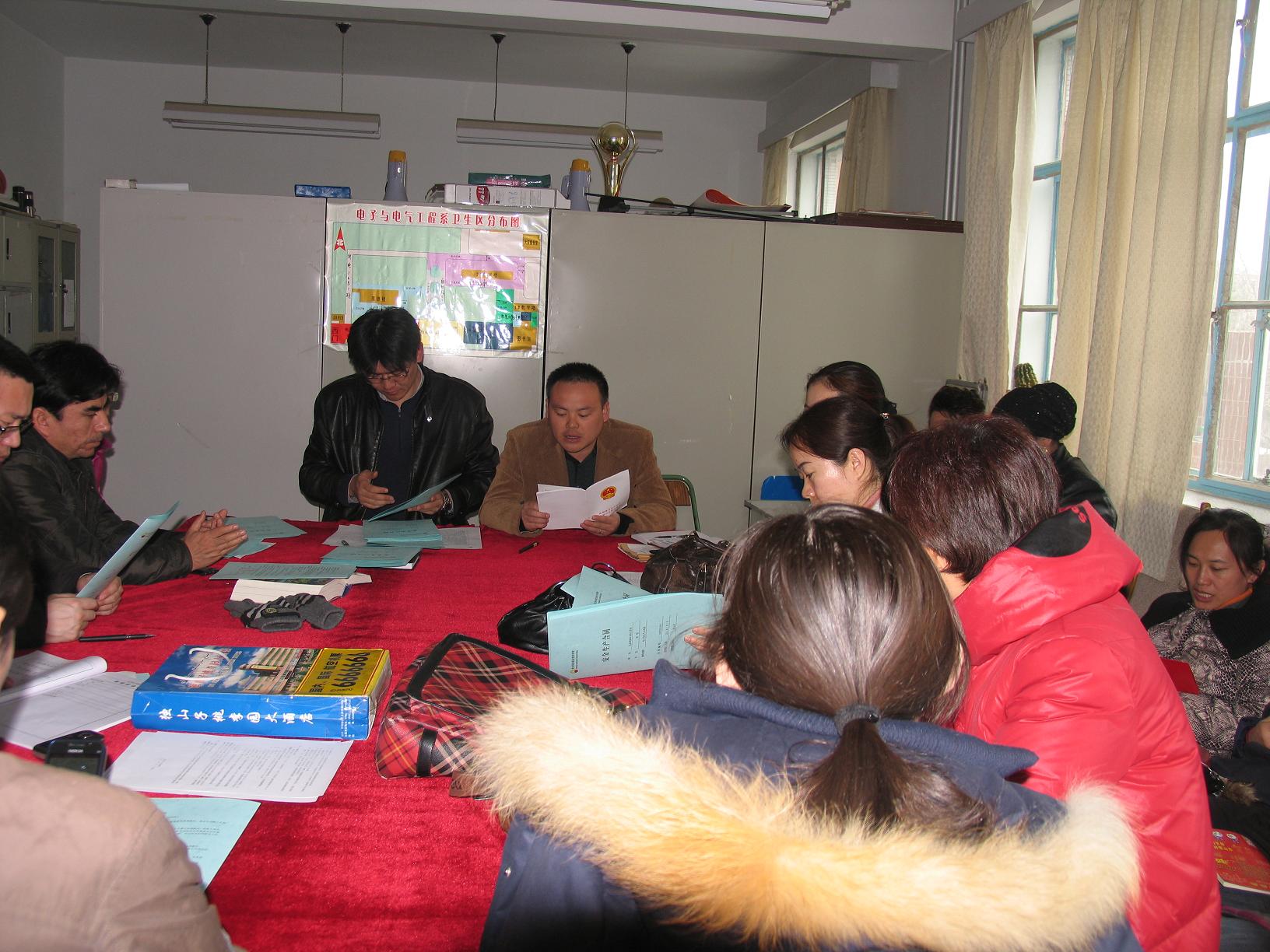 2011年3月28日下午五点半,电子与电气工程系党支部书记鲁志刚老师在电教203室组织学习了《新疆维吾尔自治区法制宣传教育条例》,全系除三名老师请假外,其余老师都参加了这次的学习。