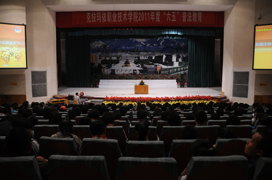此次活动,保卫处特邀请独山子公安分局刑警大队副大队长张广新作为主讲人,与同学们一起学习、探讨了青少年为什么要加强法制学习,如何用法律武器保护自己等问题,并结合实际案例,用灵活生动的形式宣传讲解了《社会治安处罚法》等法律法规,帮助大家掌握法律知识,培养同学们的用法意识,增强他们的用法本领。